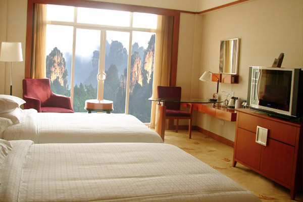 按五星級標(biāo)準(zhǔn)精心打造的京武鉑爾曼酒店依山伴水,遠望似鑲嵌于張家界武陵源自然保護區(qū)中的一顆明珠,走近仿佛人間仙境、鳥語花香?傮w規(guī)劃揉合了觀光旅游、度假商務(wù)的功能特性、突出山水、園林與東南亞度假酒店建筑的三大主題。