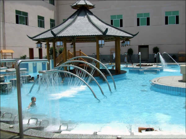 慈利縣萬福溫泉 萬福溫泉以福為文化為背景,建有四星級溫泉酒店(萬福樓),有140多間標(biāo)準(zhǔn)雙人房、單人房、豪華套房及董事套房;中、大型會議室、多功能宴會廳3間;以福文化為基礎(chǔ),在萬福溫泉的朝陽地帶建設(shè)40多個(gè)功能各異、大小不一、錯(cuò)落有秩的室內(nèi)SPA池、露天溫泉池,另有貴賓休息廳、香薰屋、山頂溫泉沖浪、空中溫泉漂流等靜、動態(tài)溫泉養(yǎng)生娛樂項(xiàng)目,把福文化溶入到自然的溫泉沐浴中,使廣大游客在福文化的環(huán)繞中享受大自然獨(dú)特的恩賜;餐飲部擁有300多人的用餐大廳及包房,推出湘菜系列、突出地方名菜、土家風(fēng)味,集百家之長,創(chuàng)獨(dú)特風(fēng)味。另有KTV、桑拿、保健、美容、棋牌、臺球、健身房、購物中心等娛樂及其它配套設(shè)施。整個(gè)建筑別具一格,氣勢恢弘,功能完善,堪稱張家界溫泉旅游的又一大奇觀。