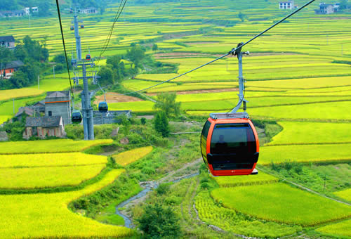 天門山索道途經(jīng)的美麗田園 天門山索道最大的亮點就是它的爬坡面支架的設(shè)計 ,這個支架共有壓索輪96個,托索輪16個,它綜合了現(xiàn)代物理學(xué)、現(xiàn)代工程學(xué)、現(xiàn)代制造業(yè)中最先進(jìn)的理論和成果,應(yīng)用了世界最先進(jìn)的索道技術(shù),從而使這段索道總給人一種蕩氣回腸、氣勢沖天的感覺。