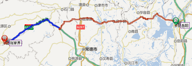 岳陽(yáng)去張家界自駕車線路圖(全程走高速)
