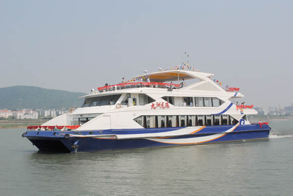 九洲龍驤豪華游船船長42米,寬12米,擁有280個客位,游輪采用了國際先進的造船技術,流線型的外觀設計、造型典雅時尚。船身共分為3層,可滿足游客餐飲、觀光、娛樂、會務等多種需求。