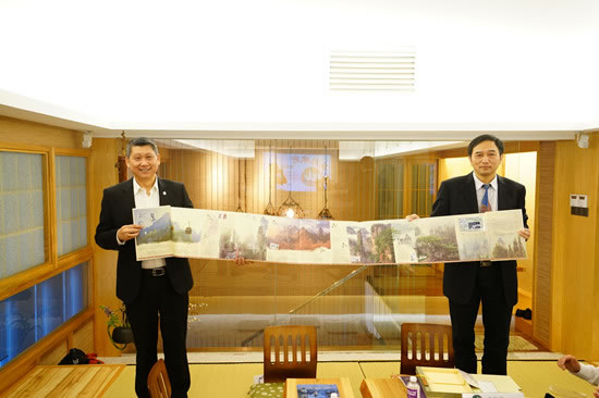 歐陽斌向蘋果旅游集團執(zhí)行主席李益輝贈送紀念品