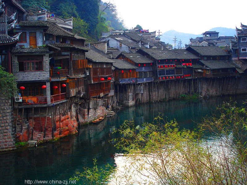 【鳳凰古城位于沱江之畔、群山環(huán)抱、關(guān)隘雄奇、碧綠的沱江依著城墻緩緩流淌,疊翠的南華山麓倒映江中,江中漁舟游船數(shù)點(diǎn),山間暮鼓晨鐘兼鳴,懸崖上的吊腳樓輕煙裊裊,碼頭邊的浣紗姑笑聲朗朗,兩岸已有數(shù)百年歷史的吊腳樓更是別有一番風(fēng)味;順?biāo)麓┻^(guò)虹橋一幅江南水鄉(xiāng)的畫(huà)面便展現(xiàn)于眼前--萬(wàn)壽宮、萬(wàn)名塔、奪翠樓……一種遠(yuǎn)離塵世的感覺(jué)悠然而生;鳳凰--猶如“一幅濃墨淺彩的中國(guó)山水畫(huà)”】
